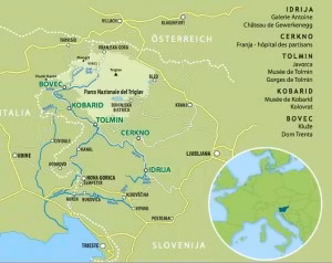 Le Chemin de la Paix, qui traverse l’ensemble de l’ouest de la Slovénie du nord au sud, fût le théâtre d’âpres confrontations au front de l’Isonzo (Soča en slovène) entre les Italiens et les Autrichiens pendant la première guerre mondiale, Kobarid est surnommé le « Verdun slovène ».