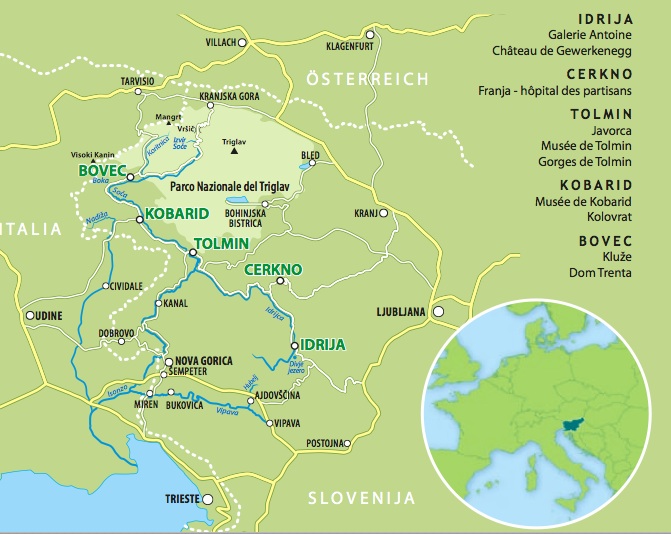 Le Chemin de la Paix, qui traverse l’ensemble de l’ouest de la Slovénie du nord au sud, fût le théâtre d’âpres confrontations au front de l’Isonzo (Soča en slovène) entre les Italiens et les Autrichiens pendant la première guerre mondiale, Kobarid est surnommé le « Verdun slovène ».